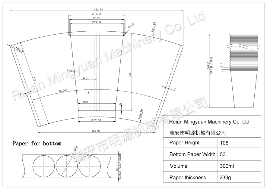 Requirement Size:Single Wall Paper Cup 120ML and 150ML, Ripple type Double wall Paper Cup 360ML