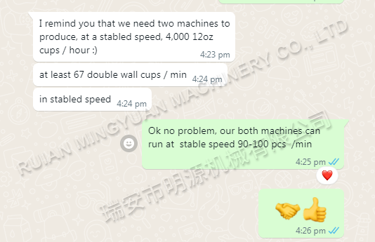 1.我们推荐的智能机型 OC100 单层纸杯机的运行速度为每分钟 100 至 110 个,而 DW100 双层纸杯机的运行速度为每分钟 90 至 100 个。