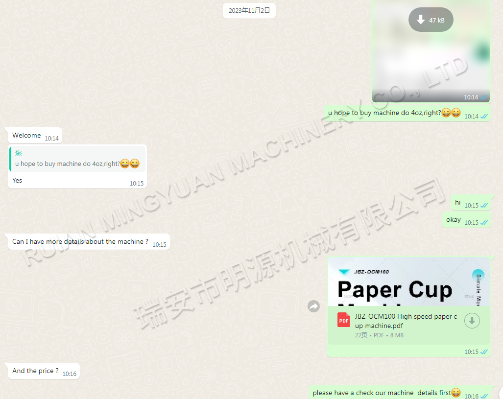 客户想要一台成本更低的纸杯机,能够生产 4 盎司容量的纸杯,因为他刚刚起步,还不清楚 4 盎司纸杯的具体尺寸,也不知道如何获取原材料。