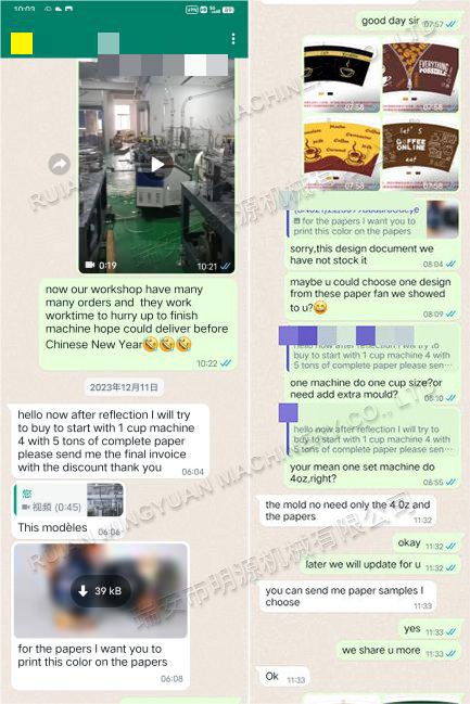 因为 2.5 盎司和 4 盎司的纸杯底部尺寸不同,如果要在一台机器上生产这两种尺寸的纸杯,更换额外的模具会很困难。所以客户决定先以一种尺寸开始经营业务,最终接受了我们的建议,选择了4oz的纸杯生产线。