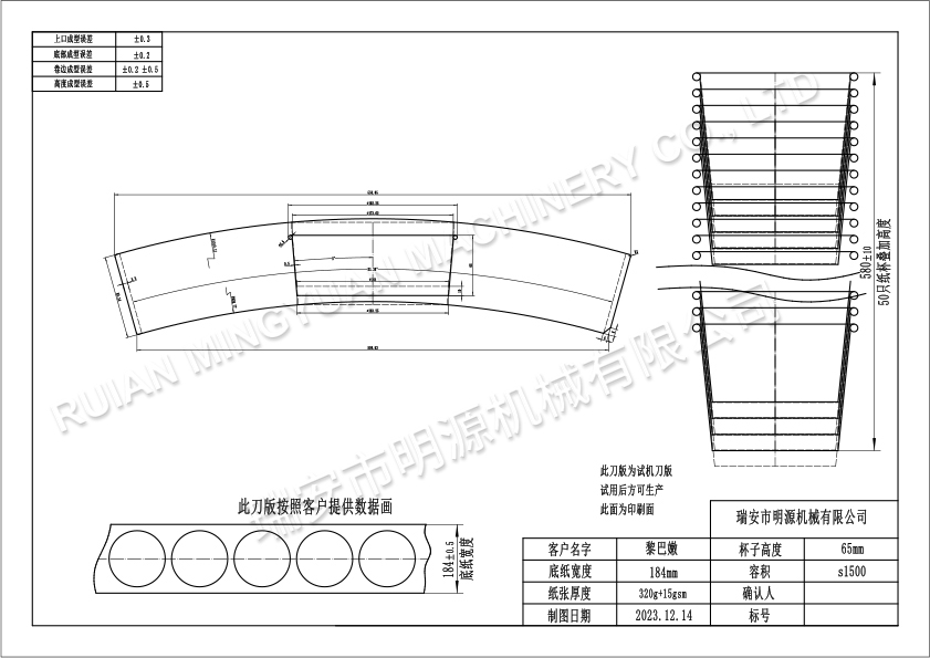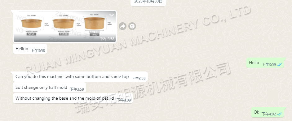 客户想要购买这种纸碗桶制造机,以便生产三种不同尺寸的纸桶,并且该机器应能与 185 毫米的 PET 盖子配套使用。