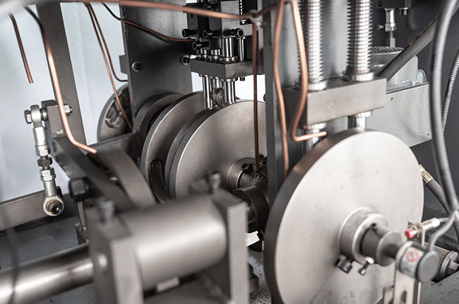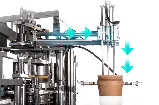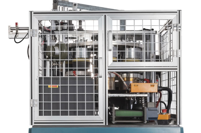 稳定运行速度为每分钟 70 至 80 件。纸碗的尺寸可制作成 6 至 35 盎司。该机器配备了 PLC 控制系统、传感器故障检测功能,并且运行安全。整台机器采用油润滑和循环系统、伺服电机、开式凸轮驱动和全齿轮传动系统,使其更加精确和稳定。