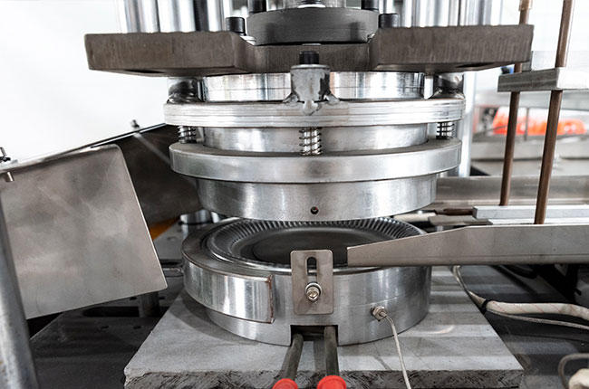 稳定运行速度为每分钟 100 至 140 个,纸盘尺寸可制作成 2 至 16 英寸。它配备有液压系统和液压缸,用于将纸盘以 200 至 1000 克/平方米的重量进行压制成型。传感器故障检测装置会检测机器并自动停止机器运行,以防出现任何错误。完成的纸盘会自动收集和计数,这可以大大节省人工成本。