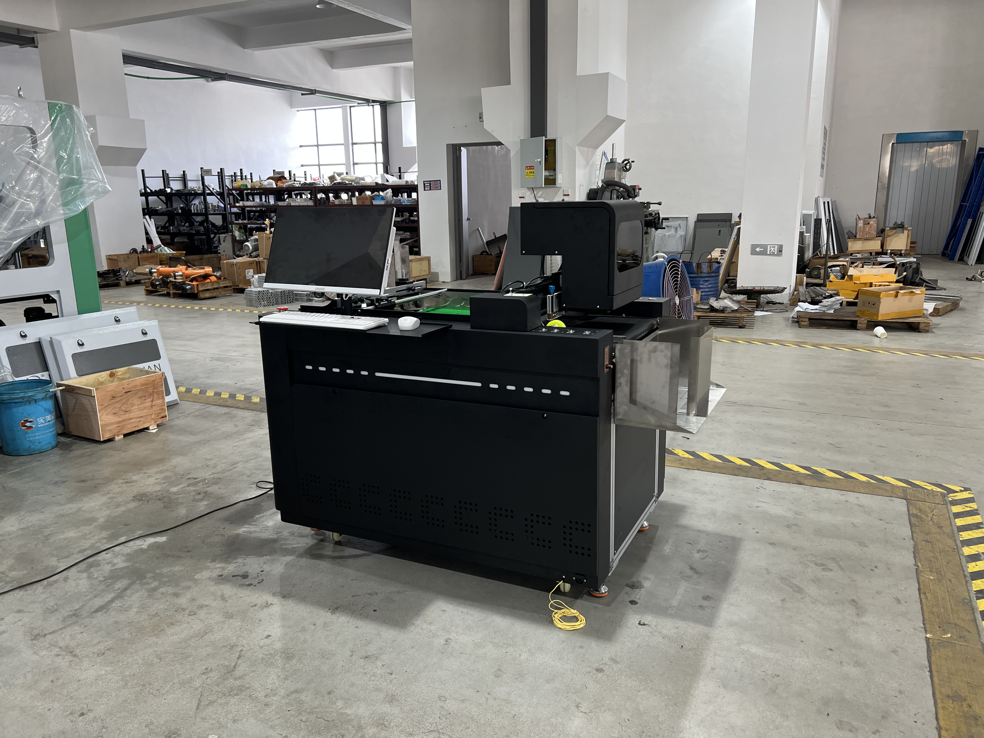 数字印刷机适用于定制印刷设计。它搭载了 Windows 10 操作系统,便于导入定制的标志图片。它配备了高精度伺服电机,打印速度可达 0 - 40 米/分钟,并采用惠普打印机头,打印质量更高,使用寿命更长。它使用的是 CMYK 环保无味墨水,墨水储存配有报警装置。橡胶防滑轨道确保进纸稳定。皮带宽 500 毫米,由 2.0 号黑色 PVC 皮带制成。进纸宽度为 500 毫米,可选择打印 A4(默认)或 A3 纸张。